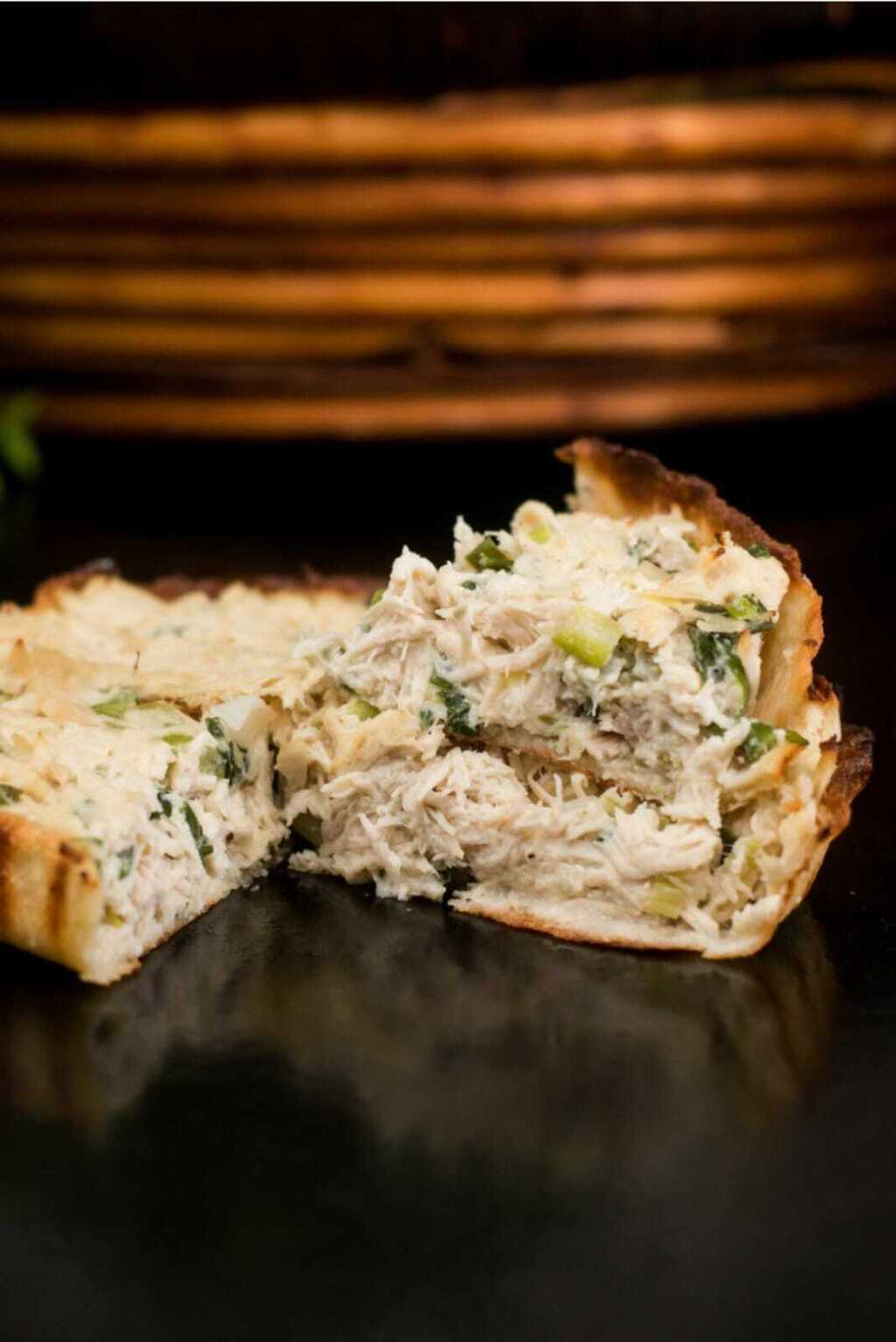 Ingredientes: pechuga de pollo, cebolla de verdeo, crema, 1 fajita ketolicity (harina de almendras, harina de coco, huevos, jugo de limon, agua, goma xantica, sal).